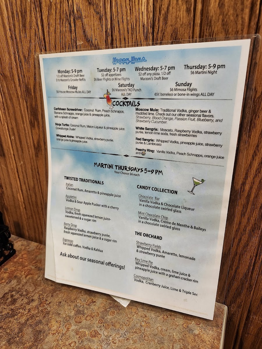 Mesclun greens, honey almonds, dried cranberries, feta cheese, tomato, cucumber, and Marzoni’s house Italian dressing.