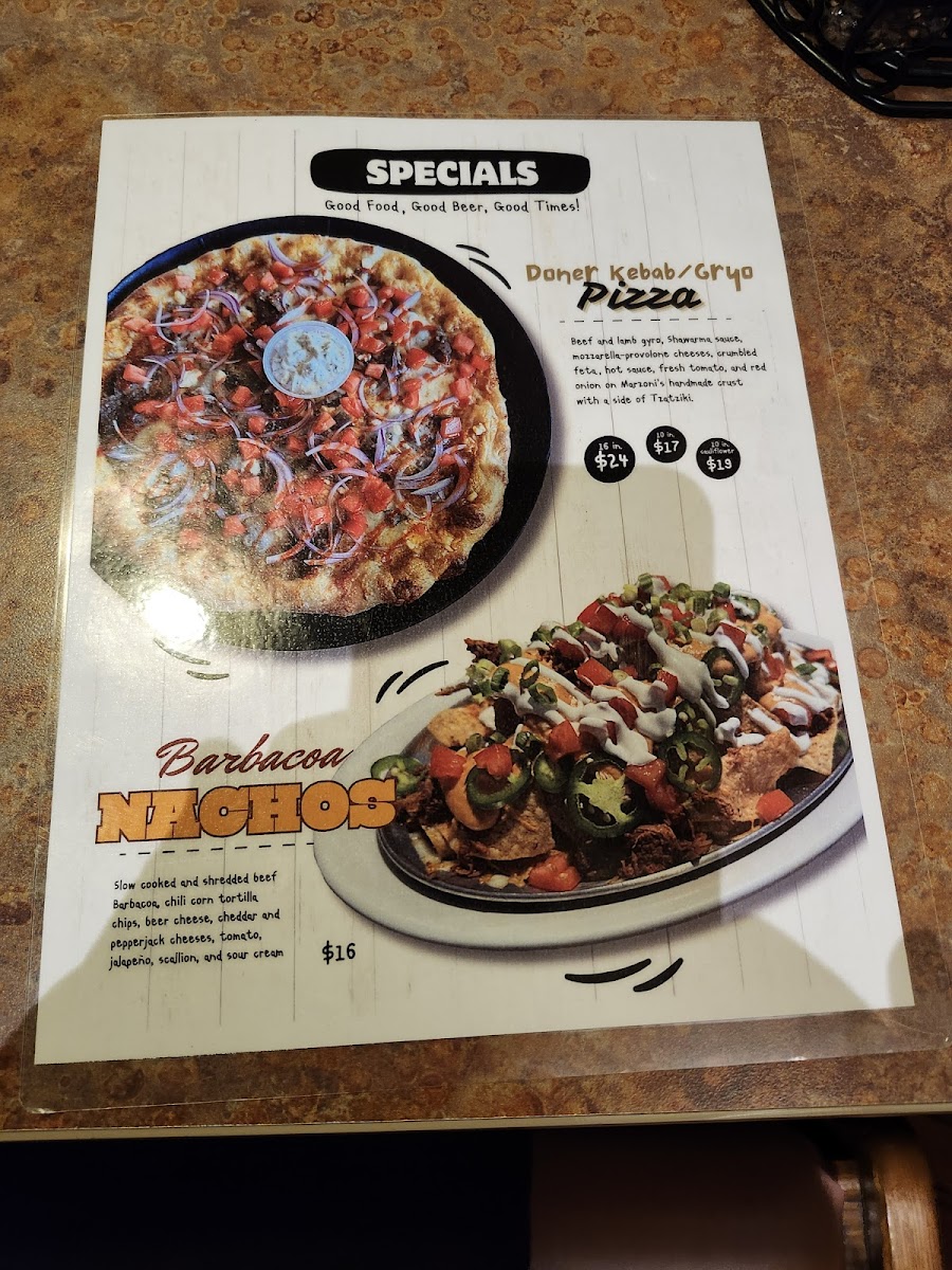 Start with sauce and cheese then add what you like from the toppings listed below to create your own favorite pizza! Toppings: Bacon, Ham, Sausage, Pepperoni, Chicken, Meatball, Red Pepper, Pineapple, Broccoli, Mushroom, Spinach, Tomato, Onion, Olives, Feta Cheese and Banana Pepper Rings.