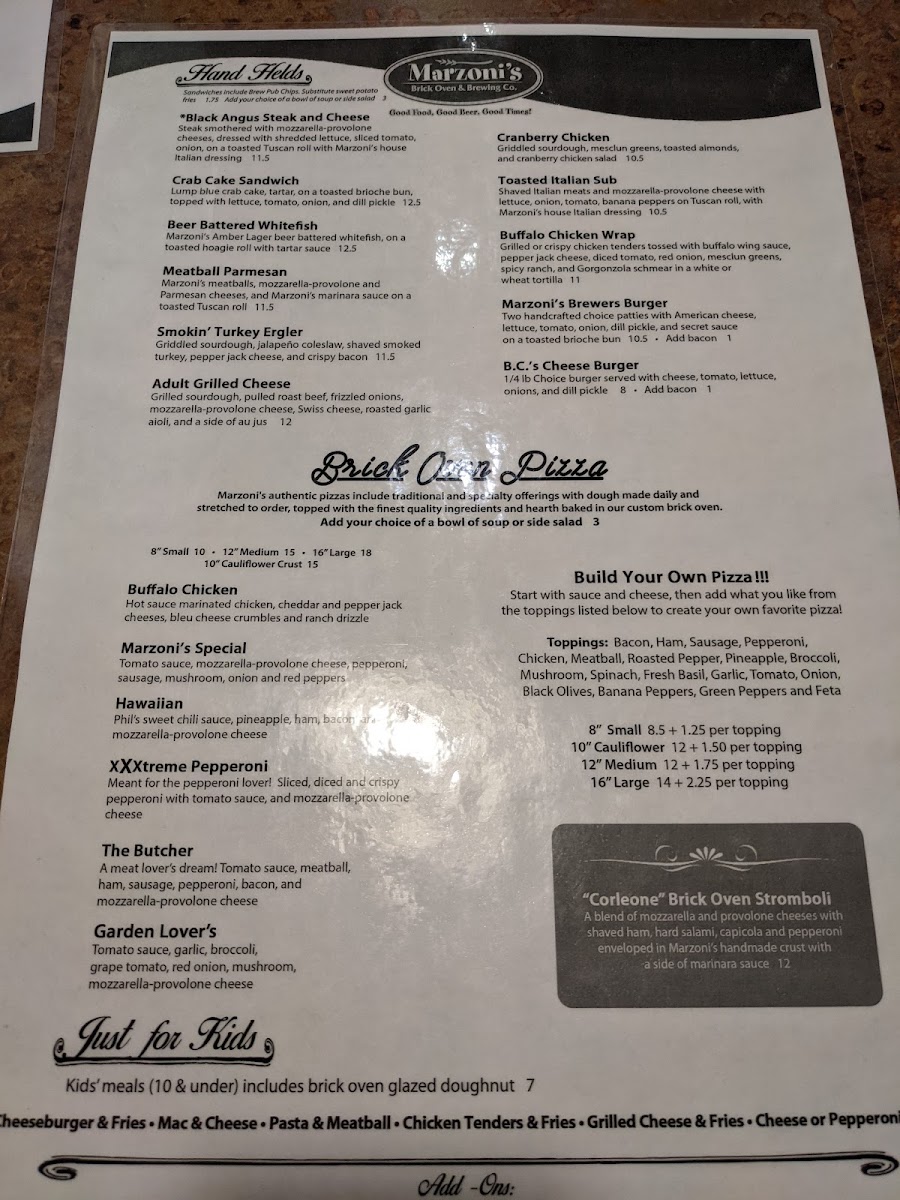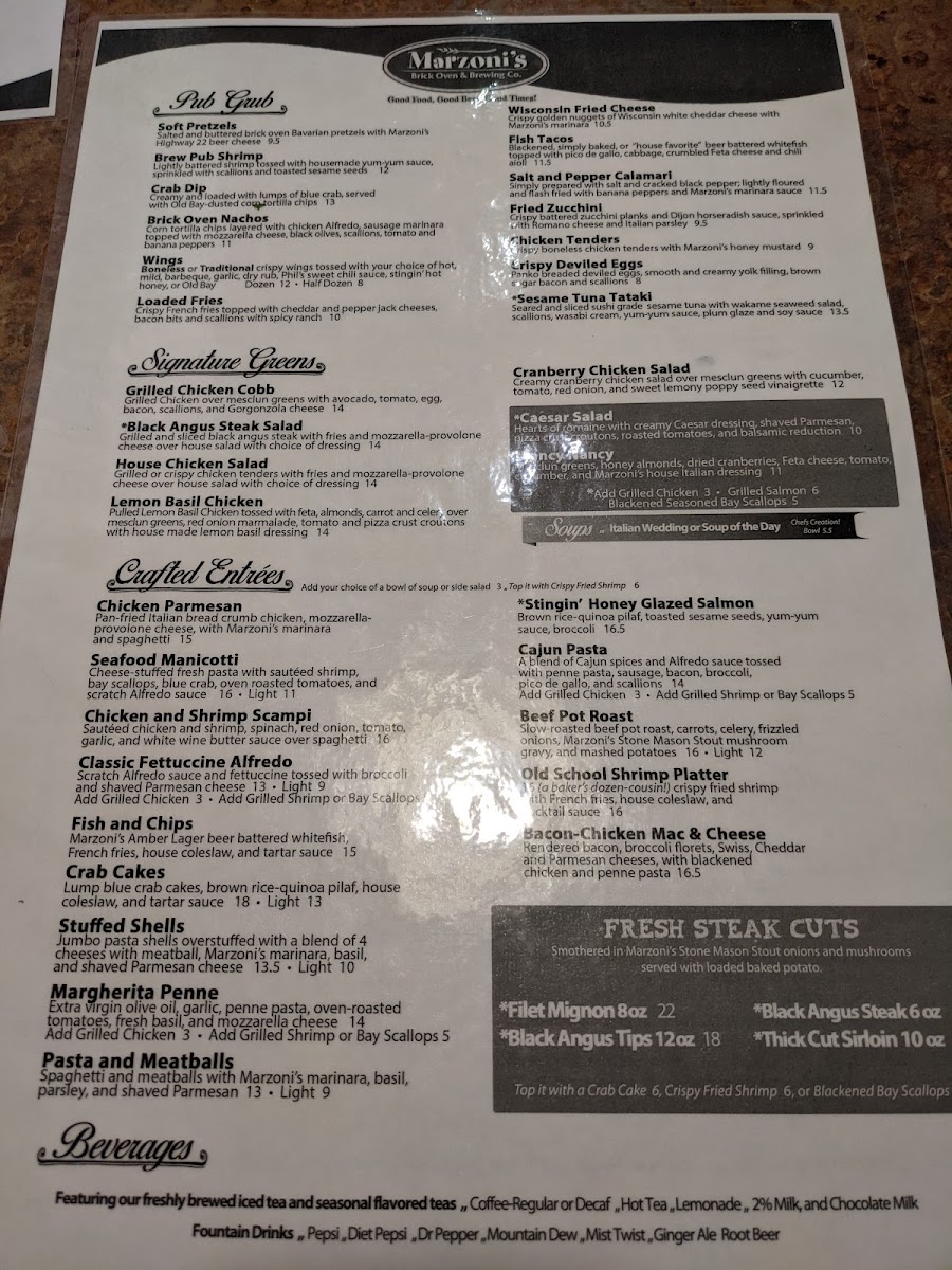 6 oz filet mignon topped with Marzoni's crab cake and tomato bruschetta, served with loaded baked potato and tartar sauce.